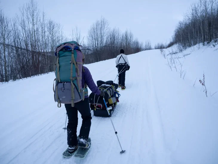 「機材やテント類、食料をソリに載せて撮影場所までの6〜7kmを歩き、ソリを引けない場所は持ち上げます。正確に計測してはいませんがソリ上には60kgほど、背負うザックは15キロ程度だったと思います。