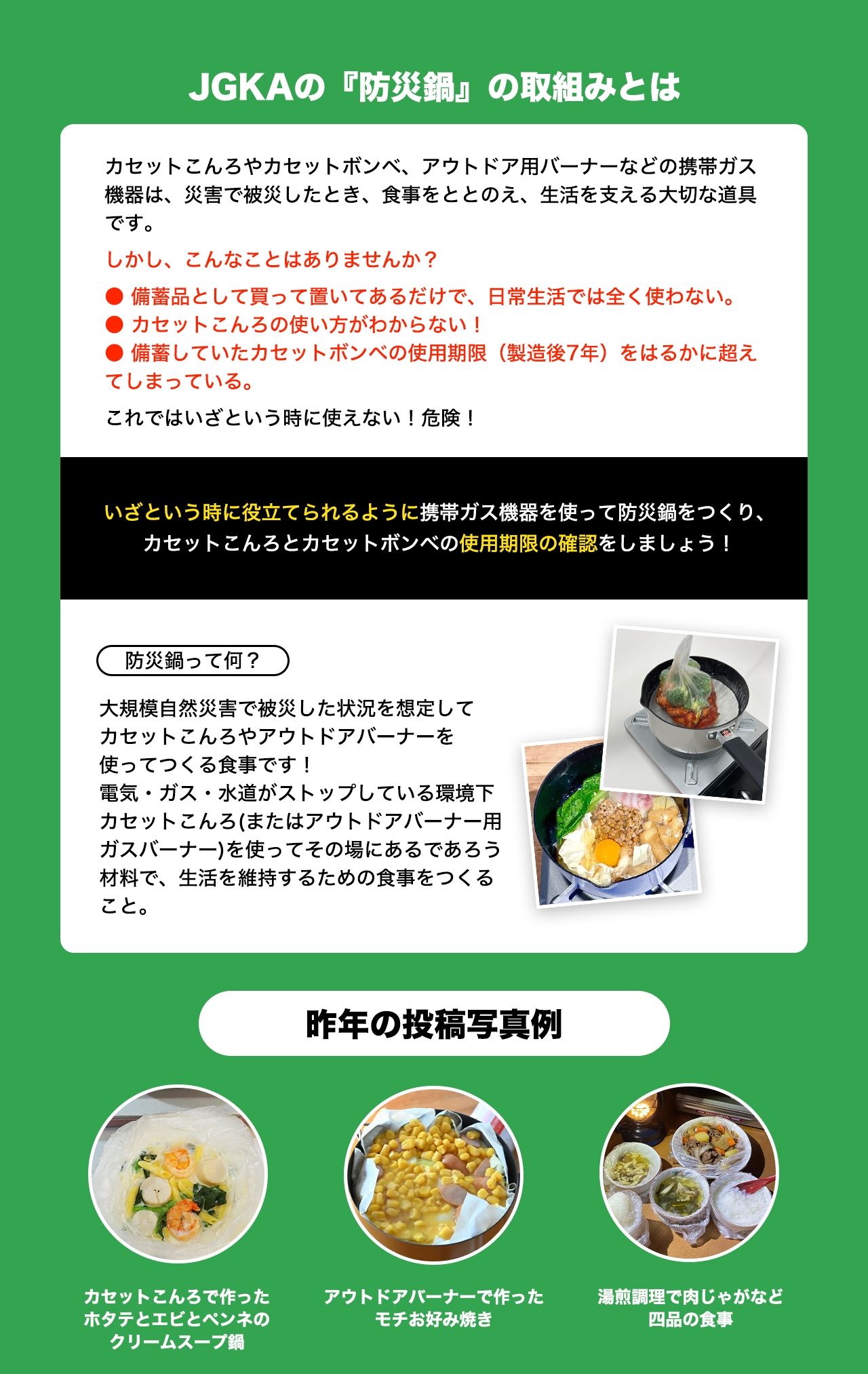 ■防災鍋キャンペーンについて https://www.jgka.or.jp/campaign/cassette_bousainabe/