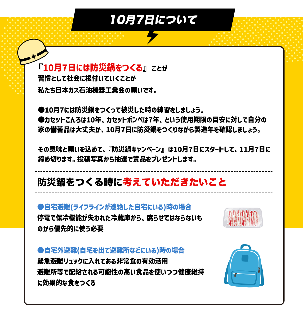 ▼ 10月7日は『カセットこんろとボンベの日』 いざという時にそなえ‟防災鍋”をつくろう!