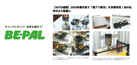 「【SOTO速報】2026年展示会で「激アツ新作」を多数発見!あの名作がより軽量に」で、2026年SOTO新製品が紹介されました。