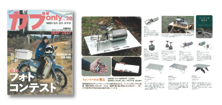 「シーズン間近!カブでCAMPのススメ!」で、Field Kite(フィールドカイト) ST-632、レギュレーター ストーブ TriTrail(トライトレイル) ST-350、「カブキャンプにマッチ!キャンプギアカタログ75」で、Trail Table(トレイルテーブル) ST-3501、Field Kite(フィールドカイト) ST-632、フィールドホッパー ST-630、G-ストーブ ST-320、レギュレーターストーブ FUSION ST-330、レギュレーターストーブ Range(レンジ) ST-340、マイクロレギュレーターストーブ ウインドマスター SOD-310、アミカス SOD-320、アミカス クッカーコンボ SOD-320CC、チタンマグ450 SOD-532が紹介されました。