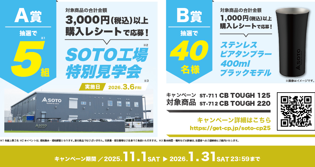 SOTO「CB TOUGH」を買って当てよう!工場見学やオリジナルタンブラーが当たるキャンペーン開催
