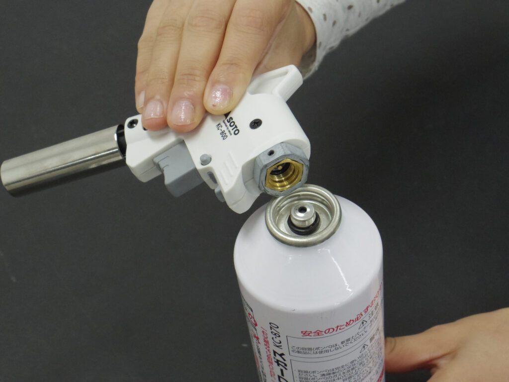 ⑥点火ボタンから指を離すと点火ボタンがもどり消火します。