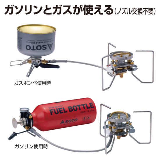 ノズル交換なしでガソリンとガスボンベ(OD缶)、どちらの燃料も使うことが