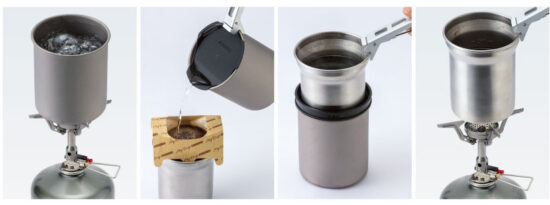 マグ400でお湯を沸かします。 マグ350にドリッパーをセットして、コーヒーを淹れます。 マグ350をマグ400に重ねて、ダブルウォールマグに! 冷めてしまっても、マグ350を取り出して再加熱できます。