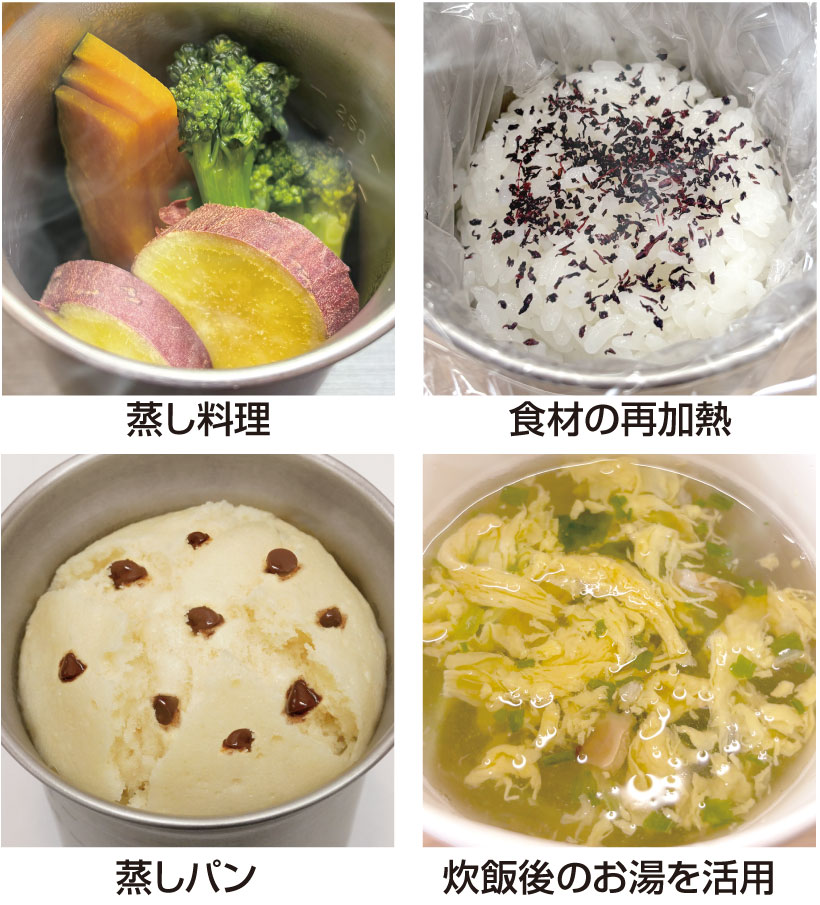 スチームライスクッカー ITADAKI は炊飯だけでなく、蒸し料理やスイーツ、食材の再加熱など幅広い調理にもお使いいただけます。