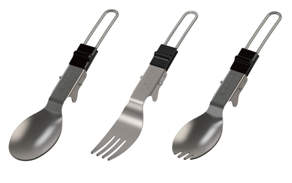 使い勝手のいい3種類のチタン製折りたたみ式カトラリーが登場します。