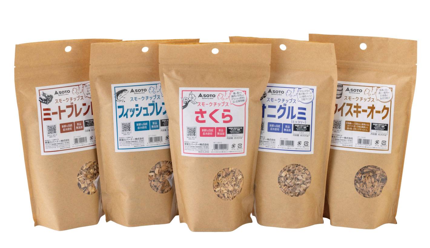 スモークチップは、原木を細かく砕き、チップ状にした燻煙材です。