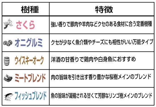 強い香りで豚肉や羊肉などクセのある食材に合う定番樹種
