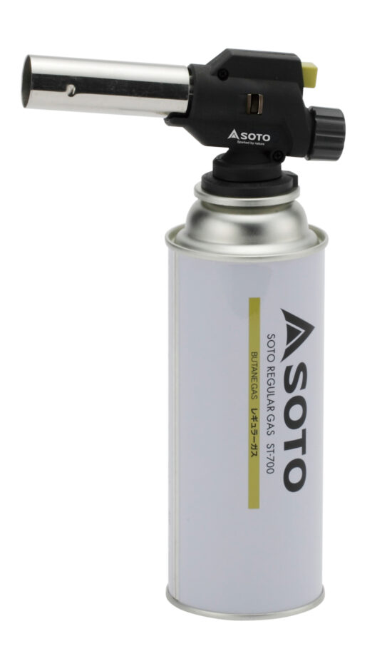 炭の跳ね返りが少ない、太くソフトな棒状炎タイプのガストーチです。