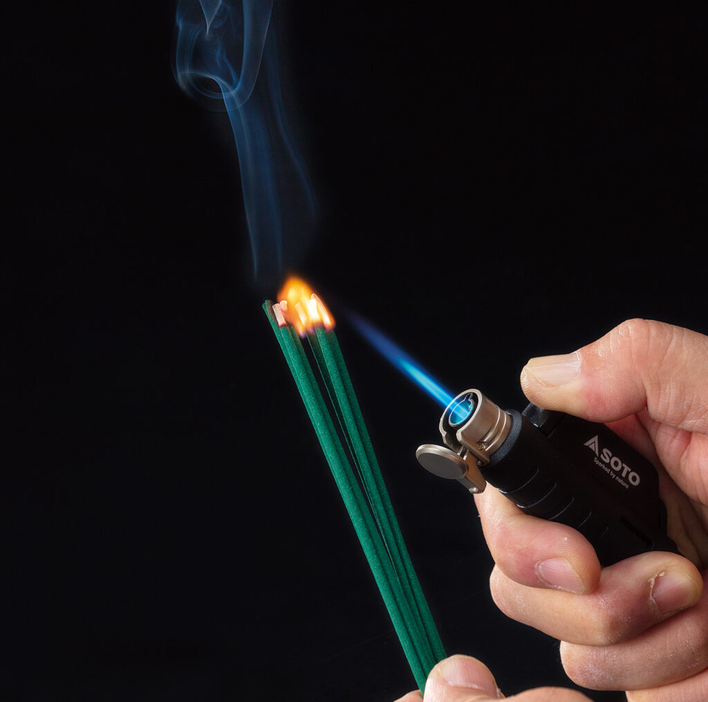 経済的なカセットガスの他、ライターガスも使用できます。