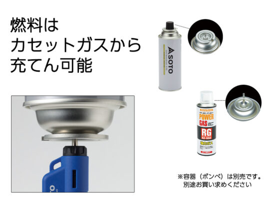 燃料は充てん式。カセットガスからの充てんもできます。