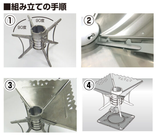 ベースの足を持って行うと、ウイングが脱落して危険です。 - エアスタの組み立て方と着火方法